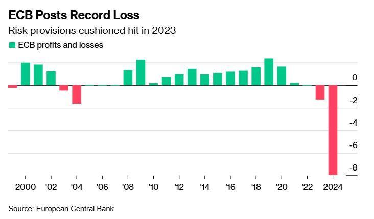 欧洲央行2024年录得79.4亿欧元(83亿美元)的创纪录亏损,这是其对通胀飙升采取激进应对措施的结果。